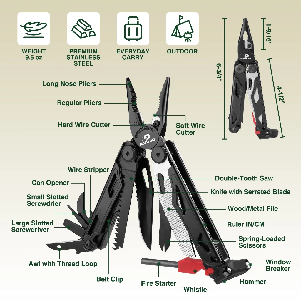 MOSSY OAK Multi-purpose pliers 19-in-1 Stainless Steel Multi Tool with Screwdriver Sleeve Self-locking with Sheath-Perfect for Outdoor