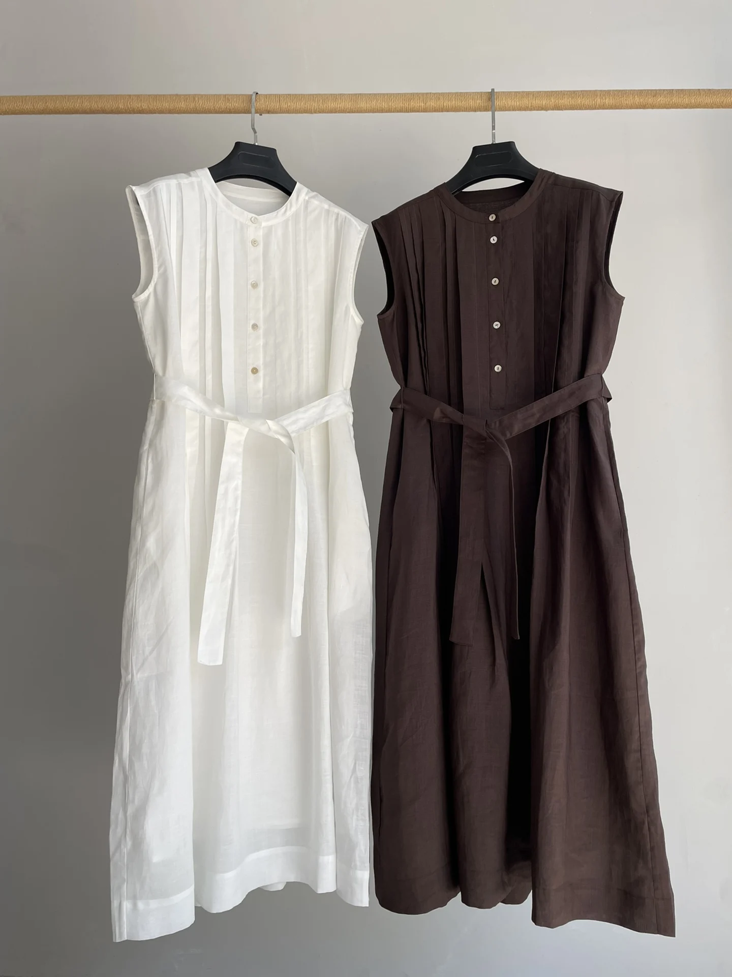 2025 spring and summer new women’s fashion sleeveless crew neck belt ramie long dress